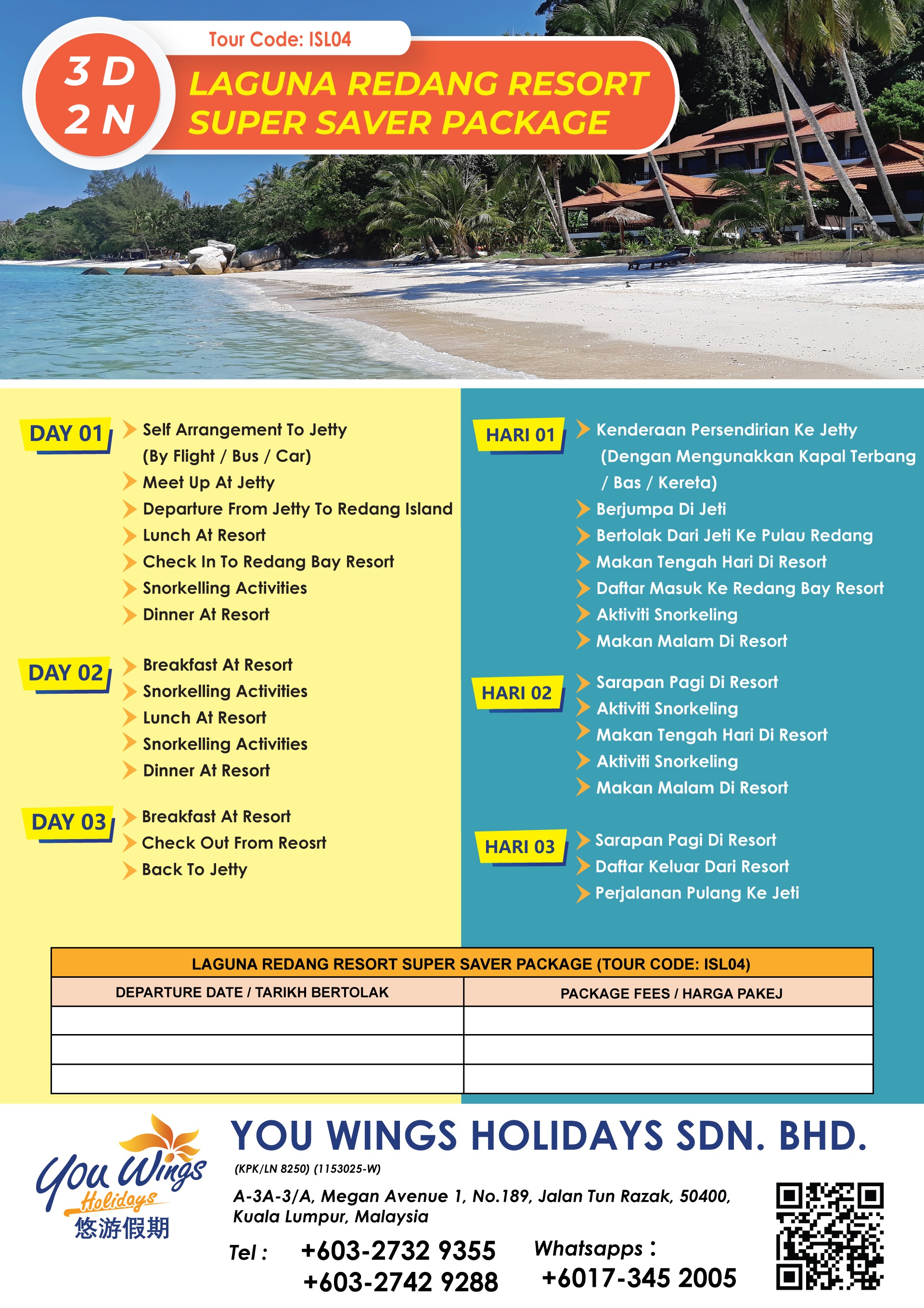 | 12. | 3D2N Laguna Redang Resort Super Saver Package | ISL04 | RM548 | ||
