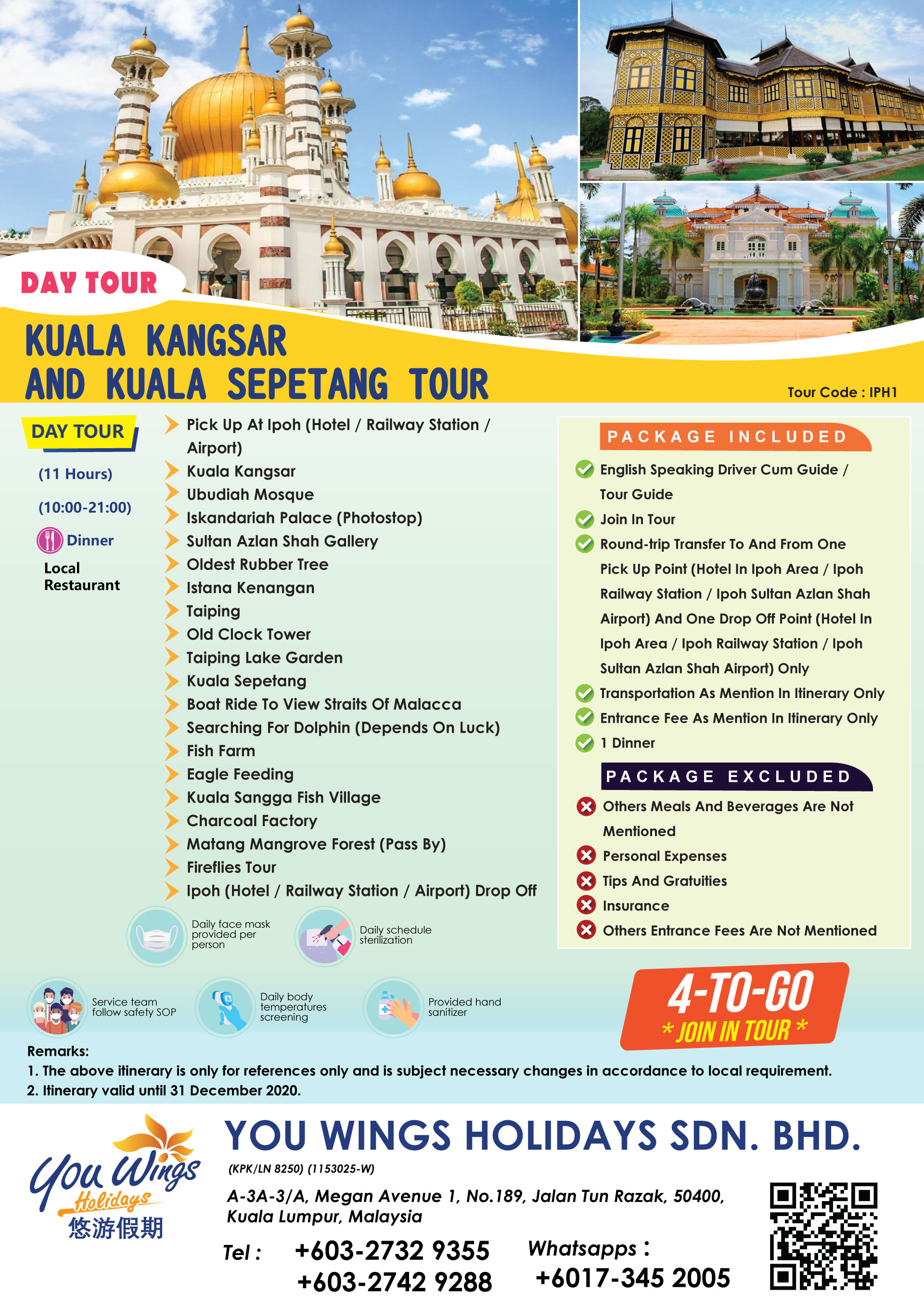 | 14. | Kuala Kangsar and Kuala Sepetang Day Tour ( Depart Ipoh ) | IPH1 | RM290 | ||