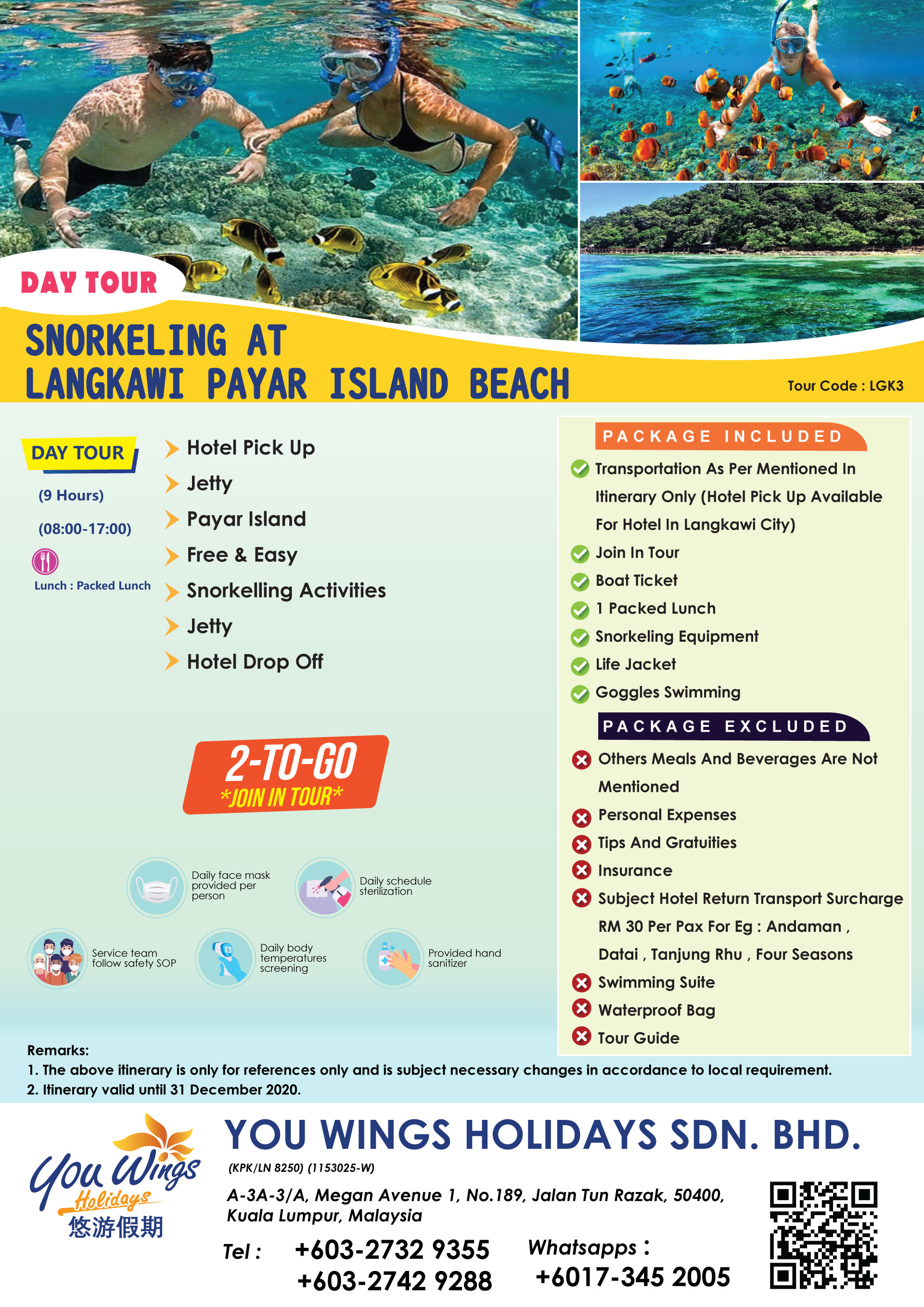 | 3. | Snorkeling At Langkawi Payar Island Beach Day Tour | LGK3 | RM190 | ||