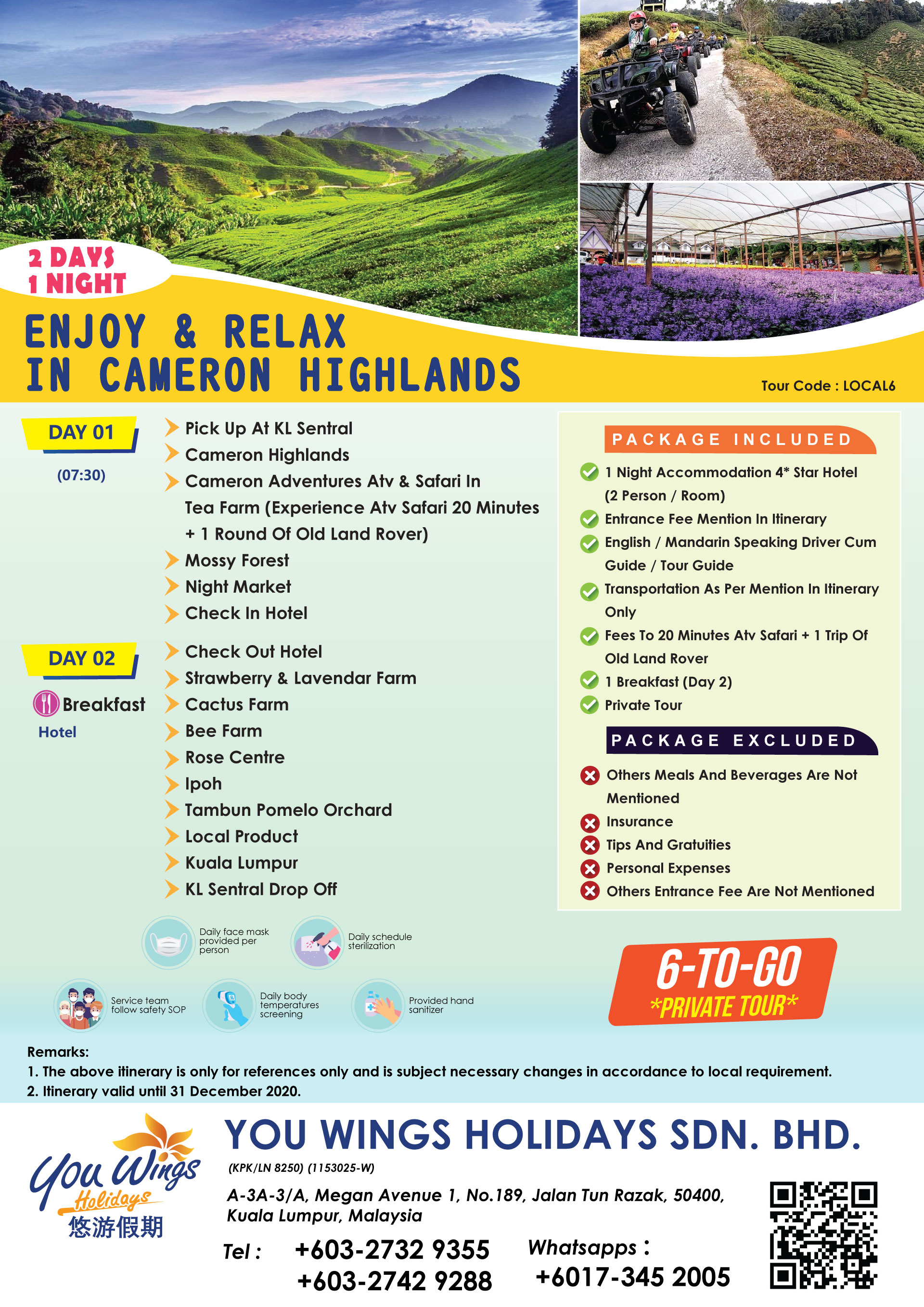 | 7. | 2 Days 1 Night Enjoy & Relax in Cameron Highlands | LOCAL6 | RM418 | ||